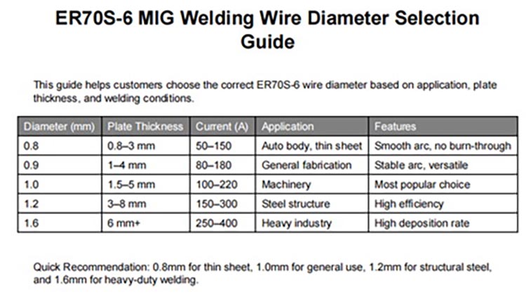 Storage – Although ER70S‑6 has good rust resistance, store it in a dry, well‑ventilated area to prevent moisture absorption.